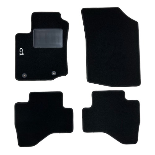 Kit de 4 Tapis de Sol Auto sur Mesure – CITROËN C1 (depuis 2014) avec sigle C1 – Moquette Noire – Neuf