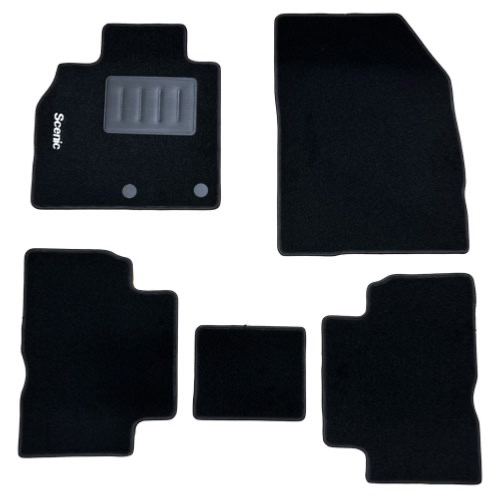 Kit de 5 Tapis de Sol Auto sur Mesure – RENAULT SCÉNIC avec sigle SCÉNIC – Moquette Noire – Neuf